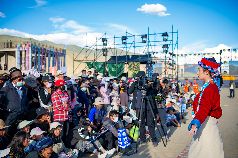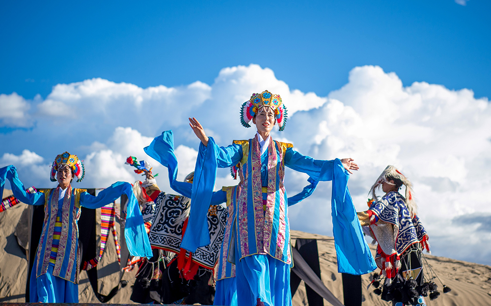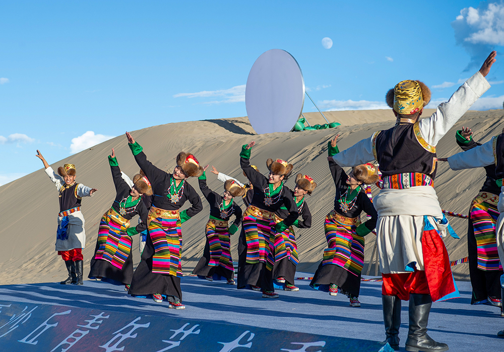西藏山南首屆“高原沙丘青年藝術季”非遺歌舞展演現場(9月15日攝)。新華網 旦增努布 攝