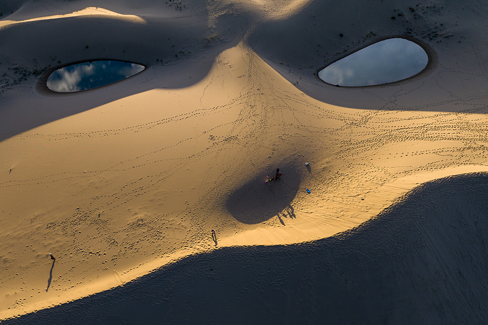 9月15日,遊客在西藏山南紮囊國家沙漠公園遊玩(無人機照片)。新華網 旦增努布 攝