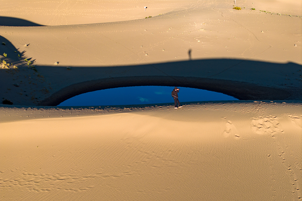 遊客在西藏山南紮囊國家沙漠公園拍攝(無人機照片,9月15日攝)。新華網 旦增努布 攝
