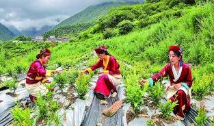 西藏錯那市勒布溝村民在采摘莓茶。新華社發