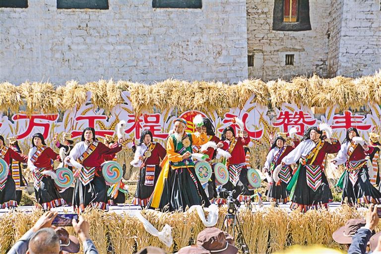 九月的山南洛紮,到處洋溢著豐(feng) 收的喜悅。在洛紮縣第七個(ge) “中國農(nong) 民豐(feng) 收節”暨秋季村晚係列活動現場,縣民間藝術團和峽穀樂(le) 隊及行政村文藝演出隊傾(qing) 情演出,歡快的舞蹈、悠揚的歌聲、幽默的小品等節目輪番上演,贏得了現場觀眾(zhong) 的陣陣喝彩聲。文藝演出中還穿插著有獎知識競答,內(nei) 容涵蓋“三農(nong) ”、人居環境整治、鄉(xiang) 村振興(xing) 等知識,競答活動獎品豐(feng) 厚,吸引著群眾(zhong) 踴躍參與(yu) ,將整個(ge) 活動氣氛推向了高潮。活動當天還開展了“聽黨(dang) 話、感黨(dang) 恩、跟黨(dang) 走”主題宣講、涉農(nong) 普法宣傳(chuan) 活動、“優(you) 秀農(nong) 耕文化展示和現代裝備成果”推廣等活動,不僅(jin) 展示了洛紮縣農(nong) 業(ye) 農(nong) 村發展的新成就,也激發了農(nong) 民的積極性、主動性和創造性。