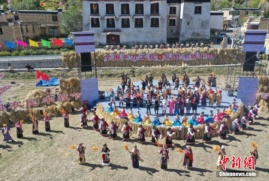 9月22日,2024年西藏“中國農(nong) 民豐(feng) 收節”慶祝活動在山南市瓊結縣拉玉鄉(xiang) 強吉村舉(ju) 行。活動以“學用‘千萬(wan) 工程’禮讚豐(feng) 收中國”為(wei) 主題,由西藏各地(市)民間演出隊為(wei) 大家獻上一場具有地域特色、體(ti) 現農(nong) 牧民豐(feng) 收喜悅的歌舞盛宴。圖為(wei) 演出現場。(無人機照片)