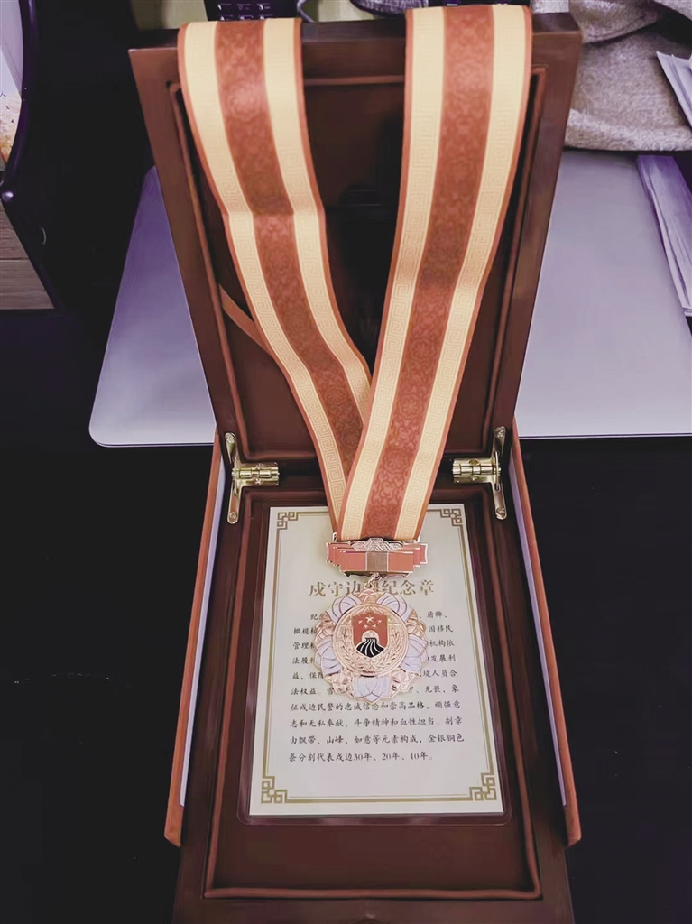 2023年4月17日,拉巴旦增收到了由國家移民管理局頒發的戍守邊疆銅質紀念章,證書(shu) 上附有說明:金銀銅色條分別代表戍邊30年、20年、10年。目前,拉巴旦增手握銅質紀念章,但他的目光已望向更遙遠的未來,正如他置頂朋友圈裏那句擲地有聲的標語:一生隻做一件事,我為(wei) 祖國守邊疆。轉眼14載春秋,拉巴旦增以滿腔熱血和不懈堅持,將年少的小小夢想繪成祖國邊陲的輝煌篇章,深深詮釋了“因為(wei) 熱愛而值得”。