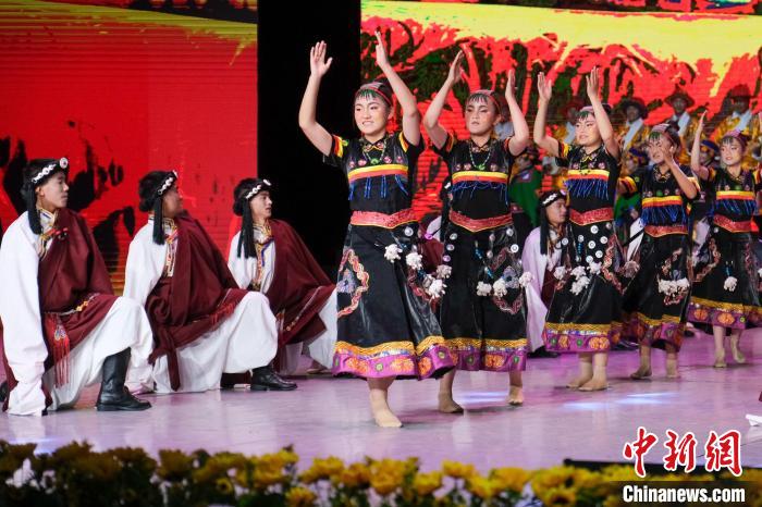 9月23日晚,西藏自治區首屆殘疾人文藝匯演在拉薩開演,來自西藏各市地的聽障、視障以及肢體(ti) 殘疾群體(ti) 紛紛登上舞台一展風姿,舞蹈、歌曲、手語等節目輪番上陣。圖為(wei) 當日演出現場,孩子們(men) 表演舞蹈。記者 江飛波 攝