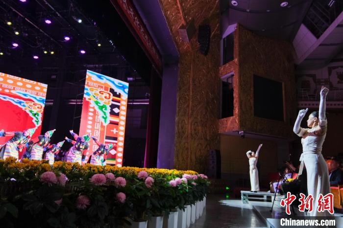 9月23日晚,西藏自治區首屆殘疾人文藝匯演在拉薩開演,來自西藏各市地的聽障、視障以及肢體(ti) 殘疾群體(ti) 紛紛登上舞台一展風姿,舞蹈、歌曲、手語等節目輪番上陣。圖為(wei) 當晚演出現場,孩子們(men) 和手語指揮老師相互配合。記者 江飛波 攝