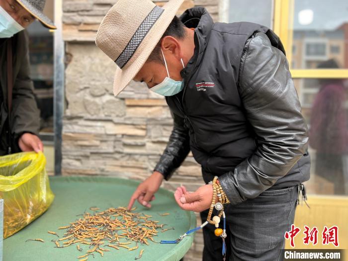 圖為(wei) 青海玉樹州牧民正在進行冬蟲夏草交易。李江寧 攝