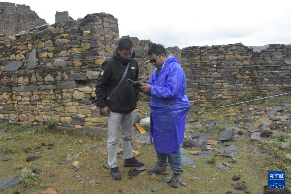 普查隊員正在采集和複核日喀則市桑珠孜區塔巴遺址本體(ti) 邊界坐標及單體(ti) 範圍。新華社記者 春拉 攝