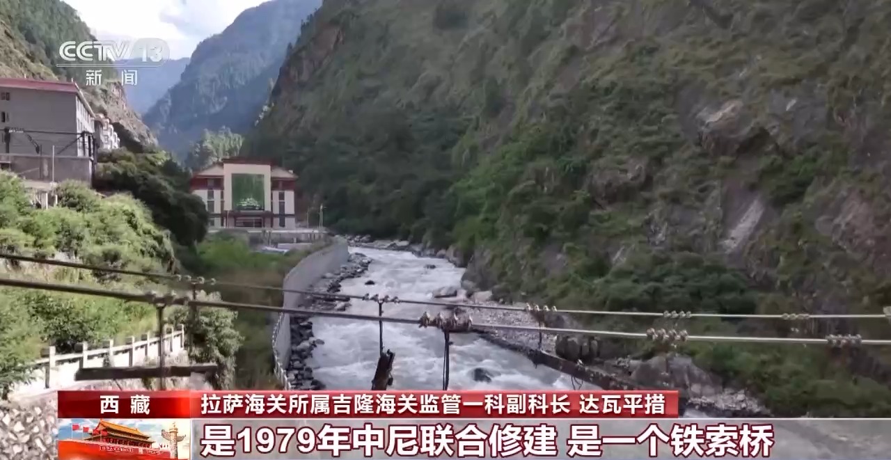拉薩海關(guan) 所屬吉隆海關(guan) 監管一科副科長 達瓦平措:我們(men) 所在的是第四代熱索橋。2015年尼泊爾“4.25地震”,吉隆口岸也是受災比較嚴(yan) 重,然後在第三代的原址基礎上建了第四代橋。對我們(men) 人員往來、貿易往來發揮了重要作用。