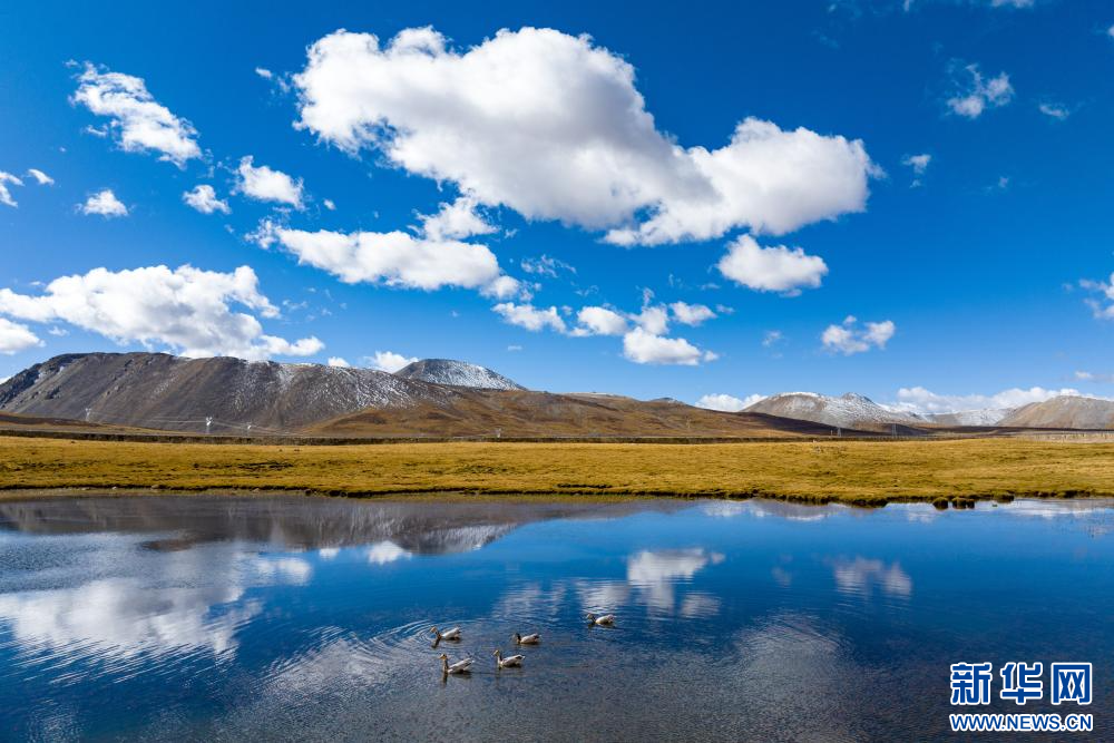10月6日,在西藏自治區那曲市嘉黎縣境內(nei) 拍攝的斑頭雁。新華網 旦增努布 攝