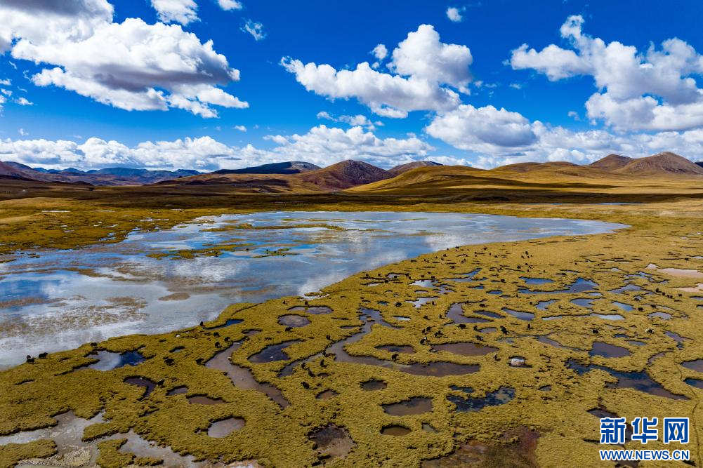 10月6日,在西藏自治區那曲市嘉黎縣境內(nei) 拍攝的犛牛(無人機照片)。新華網 旦增努布 攝