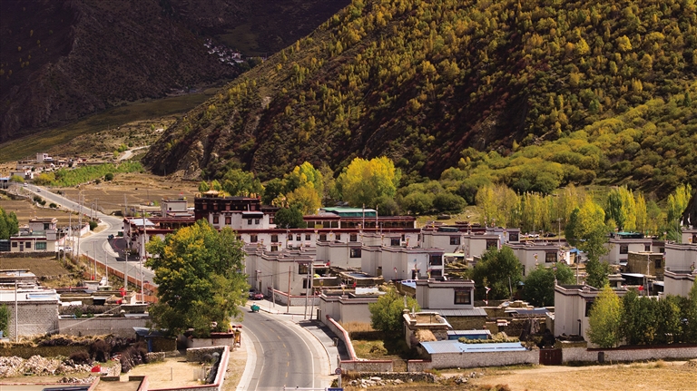 金秋時節,走進拉薩市墨竹工卡縣城,仿佛步入一幅絢麗(li) 多彩的油畫之中。深秋的墨竹工卡,天空格外湛藍,潔白的雲(yun) 朵像棉花糖一般飄浮空中。整個(ge) 縣城的街道被金黃的樹葉裝點得格外美麗(li) ,風一吹,樹葉紛紛飄落,猶如金色的蝴蝶翩翩起舞,兩(liang) 旁的樹木色彩斑斕,有金黃的銀杏、橙黃的楊樹,交相輝映,構成了一幅美不勝收的秋日畫卷。