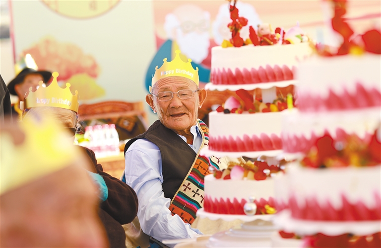 圖為(wei) 拉薩市墨竹工卡縣民政局和退役軍(jun) 人事務局舉(ju) 行“我們(men) 的節日·重陽”主題活動,現場為(wei) 老人們(men) 集體(ti) 過生日。記者 唐斌 通訊員 洛克 攝