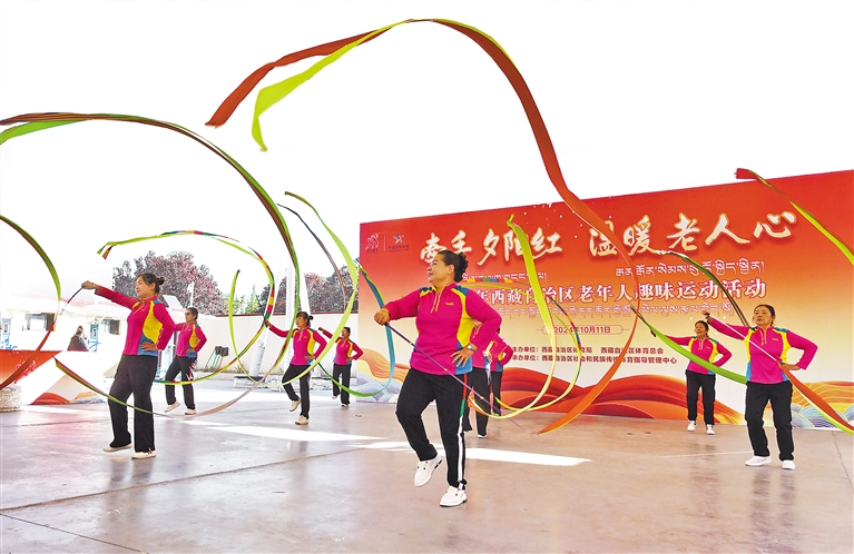 拉薩市城關(guan) 區慈鬆塘社區老年柔樂(le) 健身隊隊長阿林說:“在重陽節這個(ge) 特別的日子參加活動,心裏感覺特別溫暖。退休之後,我依舊積極參加各項體(ti) 育活動,深感生活在這個(ge) 美好的時代特別幸福。希望今後多多舉(ju) 辦類似這樣的活動,進一步展示我們(men) 老年人健康陽光、積極向上的風采。”
