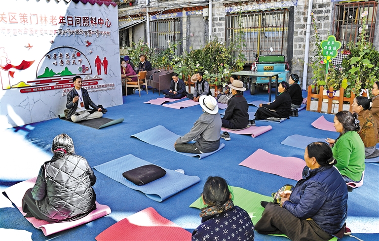 圖為(wei) 拉薩市城關(guan) 區策門林老年日間照料中心舉(ju) 辦培訓,教老人們(men) 練習(xi) 瑜伽。記者 旦增蘭(lan) 澤 攝