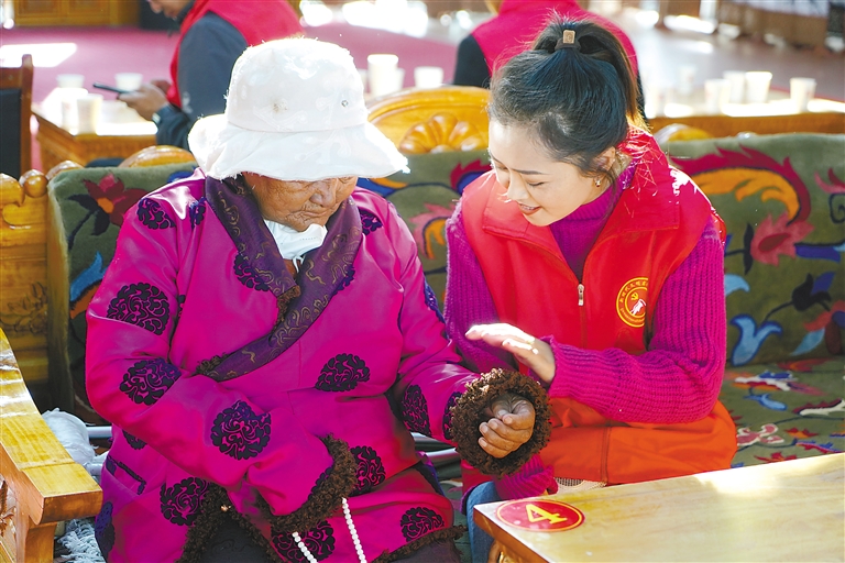 圖為(wei) 那曲市索縣新時代文明實踐中心為(wei) 特困人員集中供養(yang) 服務中心的老人送去關(guan) 心和關(guan) 愛。記者 曲珍 通訊員 王霖 攝