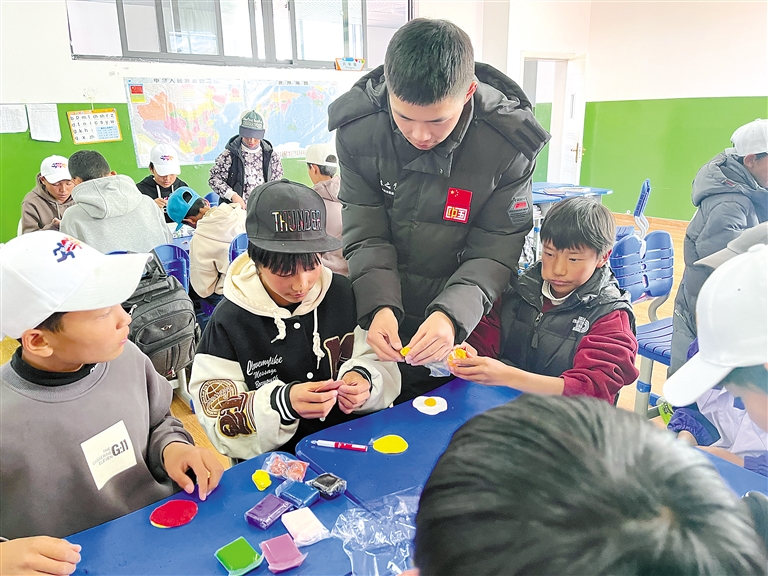 圖為(wei) 支教隊員餘(yu) 梓鑫和孩子們(men) 一起完成課堂小遊戲。