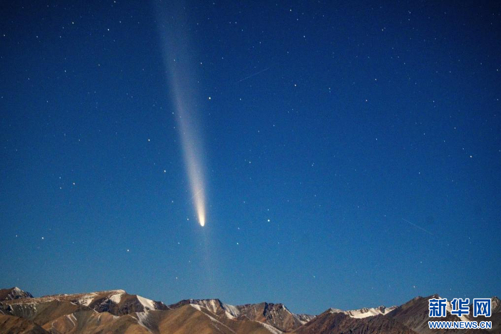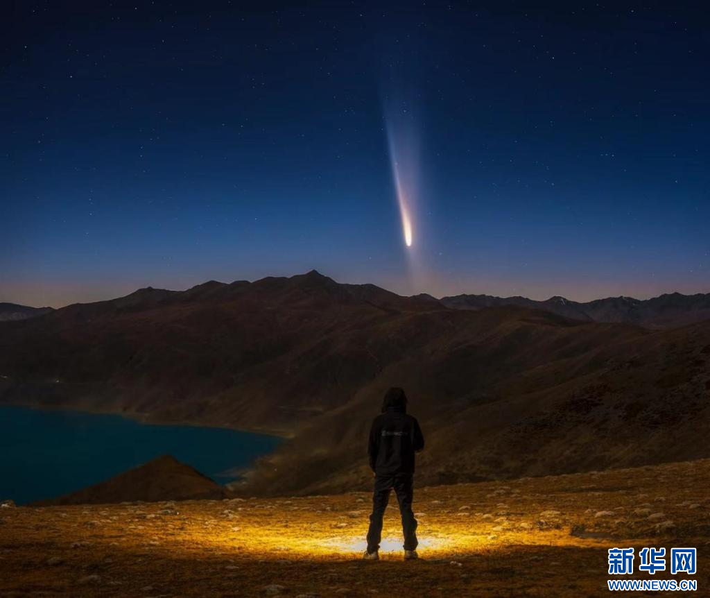 10月13日,拍攝於(yu) 羊卓雍措1號觀景台的彗星。新華網發 範禹傑 攝