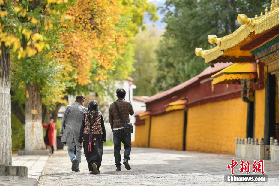 金秋十月,拉薩市西郊羅布林卡秋意正濃,景色宜人。眾(zhong) 多市民、遊客紛紛前往打卡。羅布林卡藏語意為(wei) “寶貝園林”,始建於(yu) 公元十八世紀40年代,是典型的藏式風格園林,也是西藏的世界文化遺產(chan) 之一,有格桑林卡、措吉頗章、金色頗章等宮殿建築群。這裏秋景如畫,成為(wei) 人們(men) 感受自然與(yu) 曆史文化的好去處。圖為(wei) 10月21日,遊客在羅布林卡內(nei) 參觀遊覽。貢嘎來鬆 攝