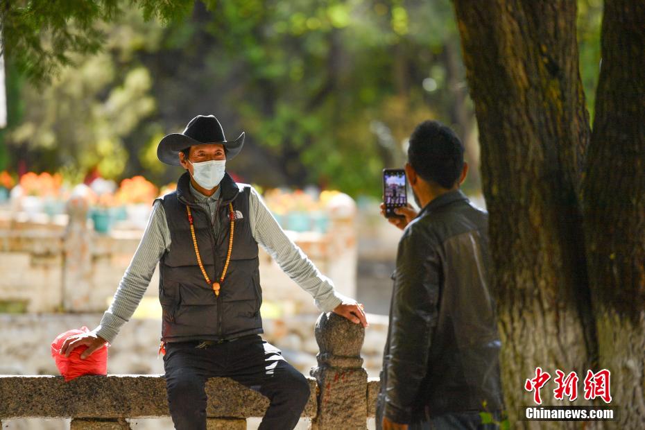 金秋十月,拉薩市西郊羅布林卡秋意正濃,景色宜人。眾(zhong) 多市民、遊客紛紛前往打卡。羅布林卡藏語意為(wei) “寶貝園林”,始建於(yu) 公元十八世紀40年代,是典型的藏式風格園林,也是西藏的世界文化遺產(chan) 之一,有格桑林卡、措吉頗章、金色頗章等宮殿建築群。這裏秋景如畫,成為(wei) 人們(men) 感受自然與(yu) 曆史文化的好去處。圖為(wei) 10月21日,民眾(zhong) 在羅布林卡內(nei) 拍照留念。貢確 攝