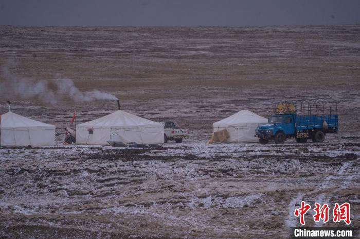 10月23日,西藏自治區那曲市安多縣多瑪鄉(xiang) 牧民在雪中放牧。當日,一場雪將藏北草原裝扮得如詩如畫。牧民們(men) 在這銀裝素裹的天地間,開始了雪中放牧的生活。牛羊在雪地中悠閑覓食,牧民駕駛著摩托車,在雪中放牧,形成了一幅動人的風景畫。圖為(wei) 牧民在草原上搭建的帳篷。中新社記者 貢嘎來鬆 攝