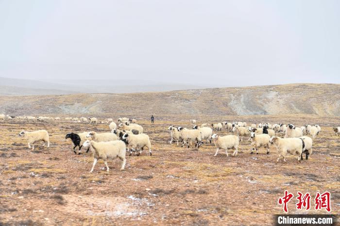 10月23日,西藏自治區那曲市安多縣多瑪鄉(xiang) 牧民在雪中放牧。當日,一場雪將藏北草原裝扮得如詩如畫。牧民們(men) 在這銀裝素裹的天地間,開始了雪中放牧的生活。牛羊在雪地中悠閑覓食,牧民駕駛著摩托車,在雪中放牧,形成了一幅動人的風景畫。圖為(wei) 羊群在草原上覓食。中新社記者 貢嘎來鬆 攝