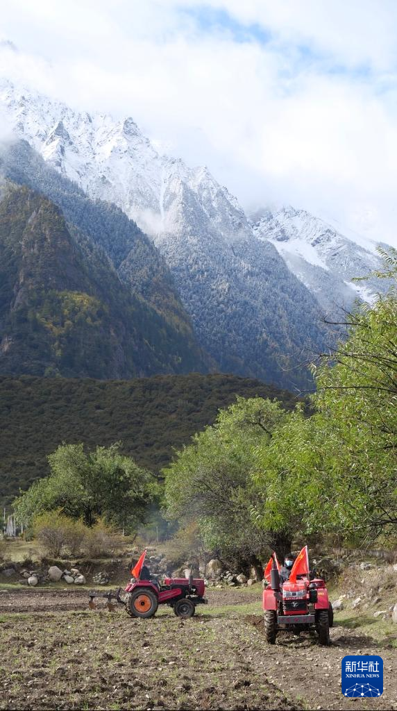 每年10月,是西藏那曲市嘉黎縣尼屋鄉(xiang) 播種冬小麥的時節。忠玉村村民索朗益西和鄉(xiang) 親(qin) 們(men) 開著拖拉機翻土備耕。