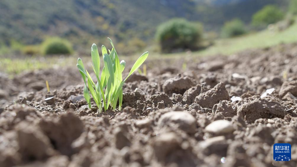 10月21日,西藏嘉黎縣尼屋鄉(xiang) 播種的冬小麥部分已經發芽。新華社記者魏冠宇 攝