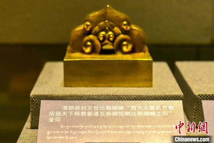 2019年3月28日,在西藏百萬(wan) 農(nong) 奴解放紀念館展出的清朝冊(ce) 封五世達賴喇嘛金印。中新社記者 江飛波 攝