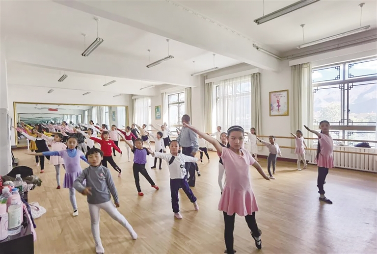 學生在上民族舞課。 圖由拉薩市青少年師範綜合實踐基地提供