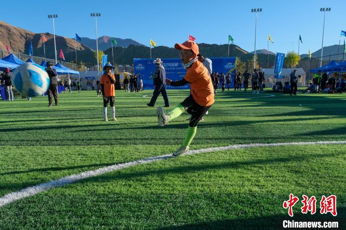 足球運動在拉薩擁有廣泛的基礎,圖為(wei) 10月26日下午,一群孩子在2024拉薩“村超”足球聯賽現場練習(xi) 射門。中新社記者 江飛波 攝
