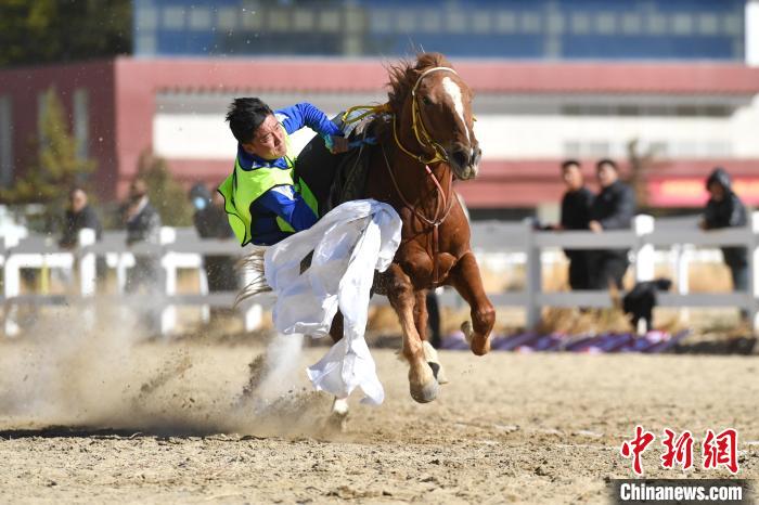27日,由西藏自治區體(ti) 育局、西藏自治區體(ti) 育總會(hui) 主辦,西藏自治區社會(hui) 和民族傳(chuan) 統體(ti) 育指導管理中心承辦的2024年西藏自治區青少年民族傳(chuan) 統馬術比賽在拉薩市北郊賽馬場舉(ju) 行。本次比賽共有30餘(yu) 名運動員,40餘(yu) 匹馬參賽,比賽共設民族賽馬和傳(chuan) 統馬術2個(ge) 大項5個(ge) 小項。圖為(wei) 西藏青少年民族傳(chuan) 統馬術比賽現場。中新社記者 貢嘎來鬆 攝