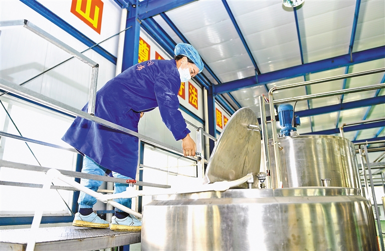 圖為(wei) 西藏嘎布羅布犛牛乳業(ye) 有限公司的工作人員在生產(chan) 線工作。記者 旦增蘭(lan) 澤 攝