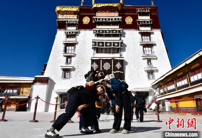 圖為(wei) 11月1日,來自四川的信眾(zhong) 在布達拉宮拍照留念。中新社記者 李林 攝