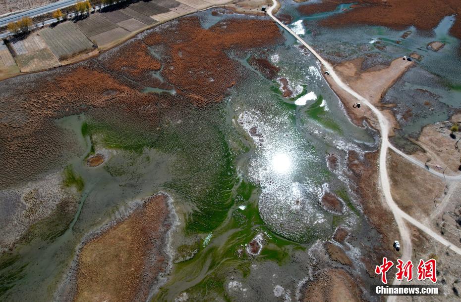 巴嘎雪濕地位於(yu) 西藏拉薩達孜區,占地麵積665.7畝(mu) 。濕地內(nei) 植被豐(feng) 富,是黑頸鶴等野生動物的天然棲息地。深秋時節的巴嘎雪濕地,從(cong) 空中俯瞰呈現出色彩斑瀾的景觀。(無人機照片)