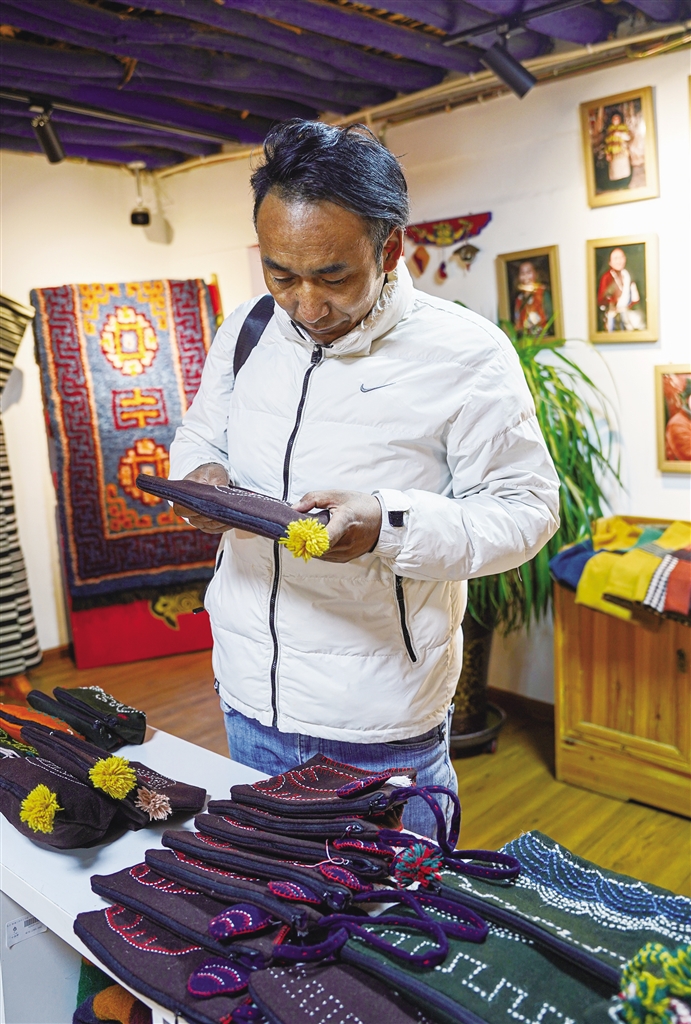 2024年起,益西多吉加入了由卓番林主導的“珠峰工坊”,正式成為(wei) 該工坊的一員。入駐工坊後,他已成功銷售了五幅作品。相比以往依賴人際網絡間接促成銷售的鬆散模式,現在他擁有了更為(wei) 穩固的市場基礎和客源。益西多吉說:“現在我隻需要專(zhuan) 注於(yu) 創作,不再擔心堆繡唐卡的銷路。更重要的是,卓番林對創作者給予了極大的尊重,這是我最看重的一點。”