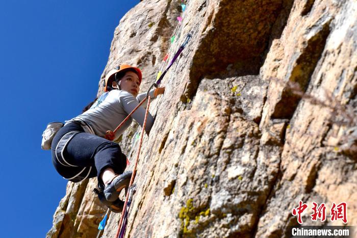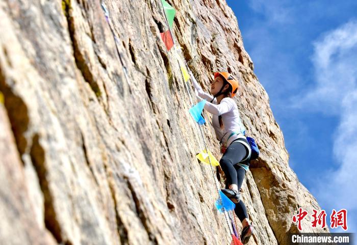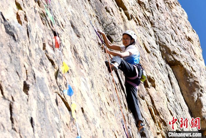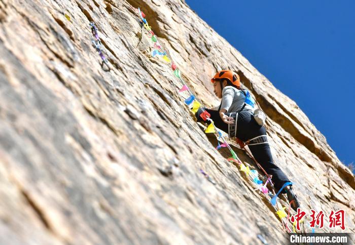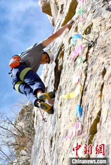11月17日,2024年西藏自治區攀岩自然岩壁公開賽決(jue) 賽在拉薩市城關(guan) 區奪底街道吉倉(cang) 自然岩壁場地舉(ju) 行。本次賽事共有來自全國的55名選手參賽,分預賽和決(jue) 賽兩(liang) 輪。圖為(wei) 參賽選手劉亞(ya) 豪決(jue) 賽中。中新社記者 李林 攝