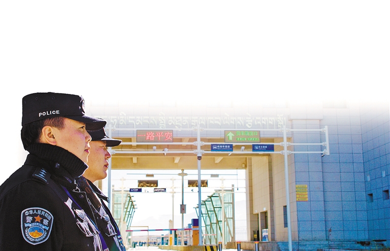 裏孜邊檢站民警在執勤。通訊員 西繞拉珍 記者 頓珠紮西 攝