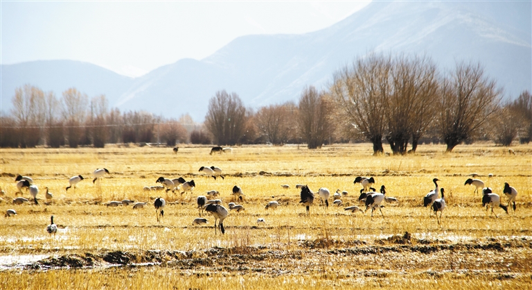 又是一年遷徙季,日喀則迎來了黑頸鶴。