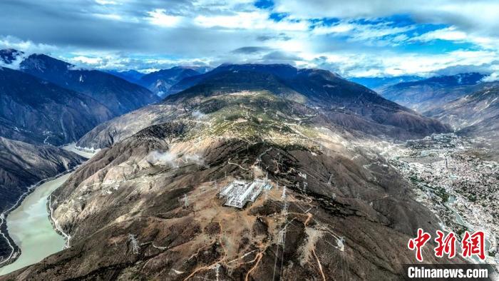 海拔3300米象鼻山頂的川藏電力聯網工程500千伏巴塘變電站與(yu) 金沙江和巴塘縣城比鄰而居。李威 攝