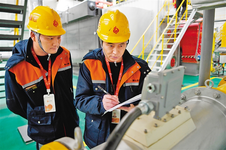 拉薩市暖心燃氣熱力有限責任公司工作人員在鍋爐房內(nei) 檢查設備運行情況。記者 王敏 攝