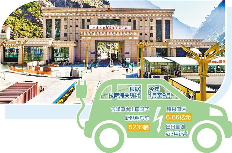 在位於(yu) 日喀則市的吉隆口岸,裝載著一輛輛國產(chan) 新能源汽車的大卡車正緩緩駛出國門,駛向尼泊爾。今年以來,新能源汽車出口形勢良好,貿易值屢創新高,成為(wei) 西藏外貿新的增長點。根據拉薩海關(guan) 統計,今年1月至9月,吉隆口岸出口國產(chan) 新能源汽車5231輛,貿易值達6.66億(yi) 元,出口量創近3年新高。
