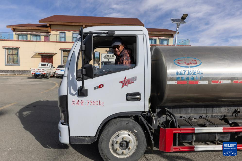 11月28日,駕駛員用罐車將巴氏殺菌後的新鮮犛牛奶運往拉薩市場。新華社記者 薑帆 攝