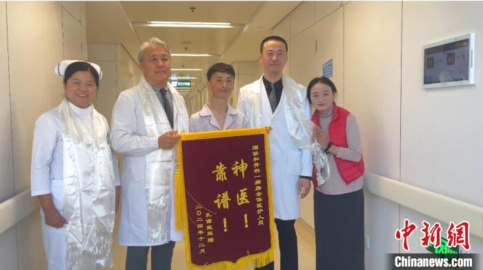 3日上午,22歲的藏族青年紮西能周和母親(qin) 給北京協和醫院骨科病房的醫護人員獻哈達,並送上錦旗。