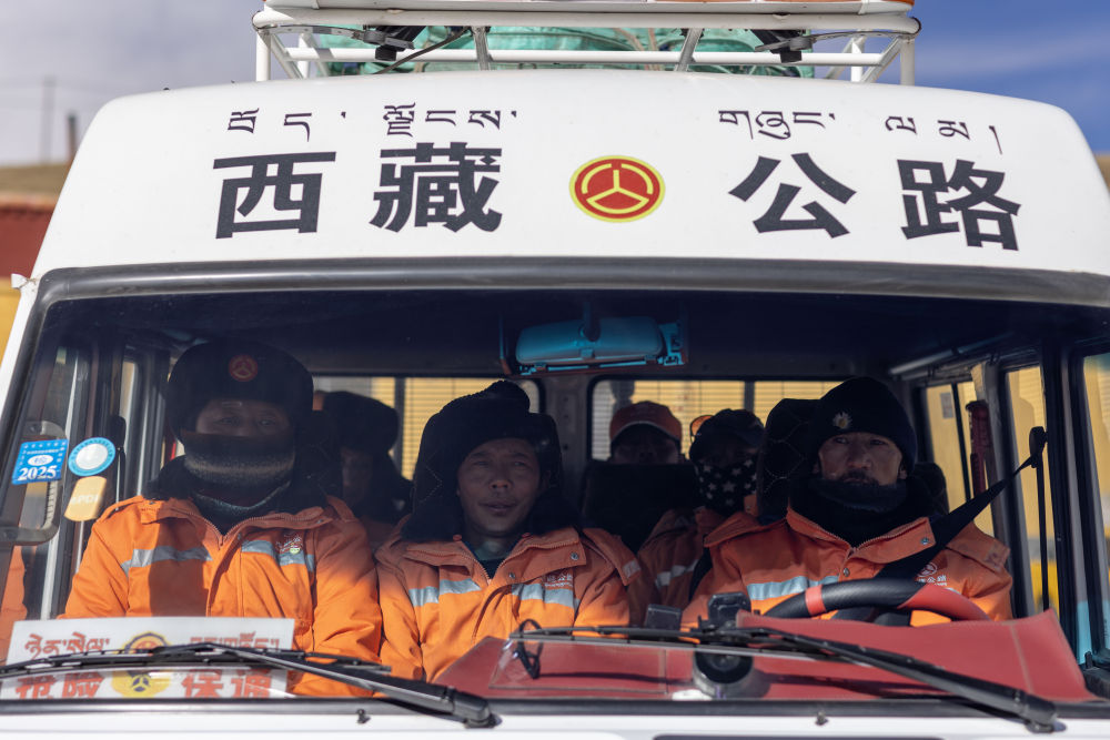 “天下第一道班”的養(yang) 路工人們(men) 乘車去養(yang) 護道路(12月1日攝)。新華社記者 薑帆 攝
