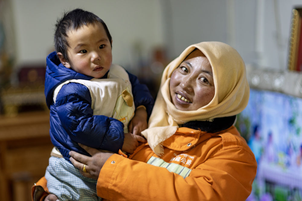 養(yang) 路工人益西曲珍(右)和一歲多的兒(er) 子紮西羅布在“天下第一道班”的職工宿舍中(12月1日攝)。新華社記者 薑帆 攝