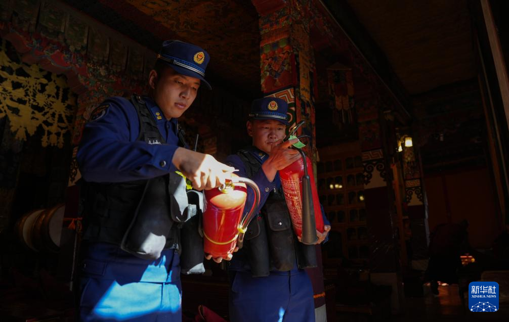 12月5日,布宮消防救援大隊隊員在例行檢查消防設備。新華社記者 晉美多吉 攝
