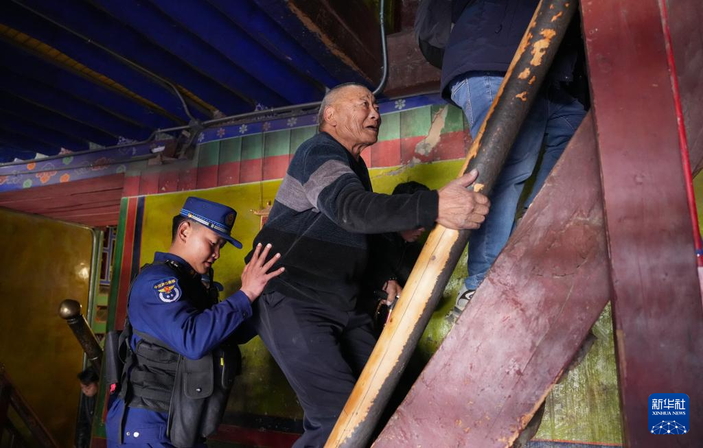 12月5日,布宮消防救援大隊隊員協助群眾(zhong) 上樓梯。新華社記者 晉美多吉 攝