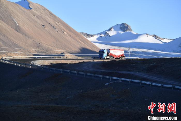 圖為(wei) 運輸車輛行駛在青藏公路上。 貢確 攝
