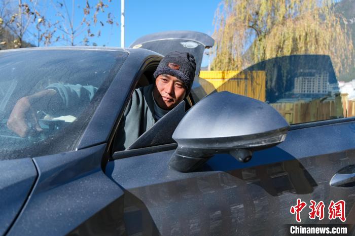 12月17日,來自江蘇昆山的自駕遊客劉兵在西藏波密縣一營地內(nei) 休整。中新社記者 江飛波 攝