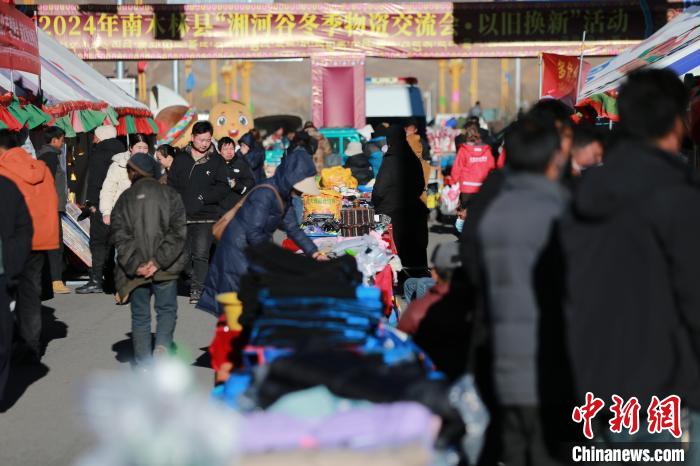 圖為(wei) 市民在湘河穀冬季物資交流會(hui) 活動現場選購商品。梁犇 攝